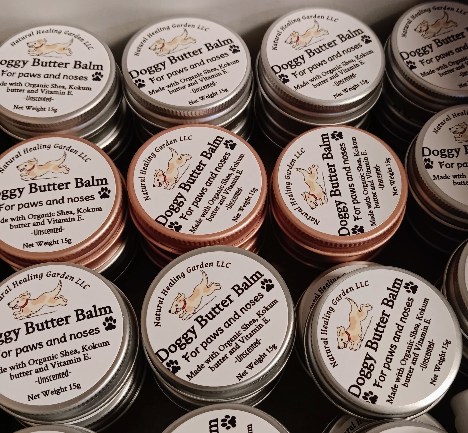 Whipped Doggy Butter Balm for the doggy nose and paws. Only made with organic natural ingredients. Unscented and non toxic.